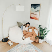 Designed with your room in mind. This triangular shaped bean bag was expertly designed by our team at Ultimate Sack to transform any empty corner into a cozy haven. Similar in size to our Ultimate Sack 6000, this bean bag chair is perfect for reading, relaxing, or taking a quick nap â in your own little corner.